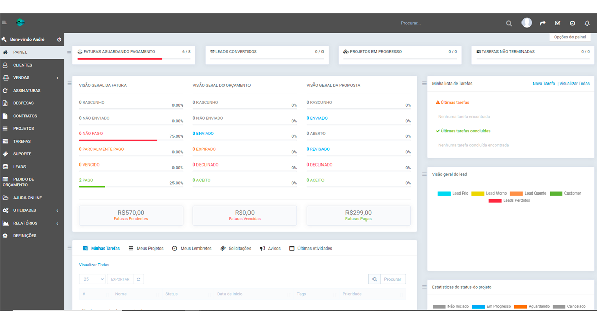 Gerenciar Clientes, Projetos, Criar Faturas, Tudo em um só Lugar